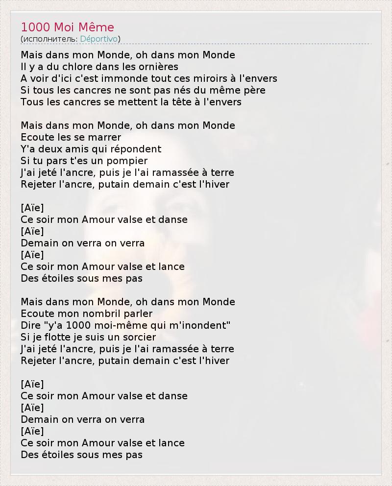 А как ты думаешь, о чем песня "1000 Moi Même" ?