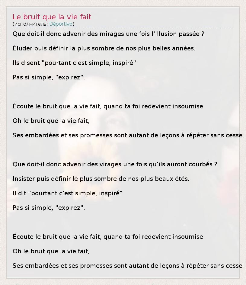 ГлавнаяИсполнителиDéportivoLe bruit que la vie fait