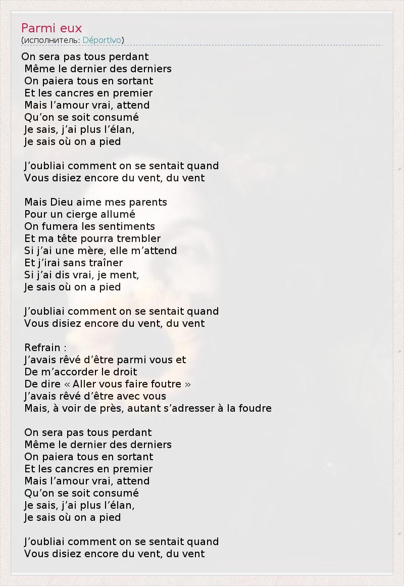 А как ты думаешь, о чем песня "Parmi eux" ?