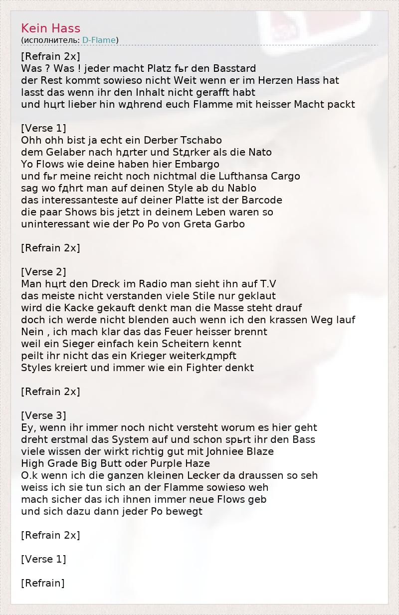 А как ты думаешь, о чем песня "Kein Hass" ?