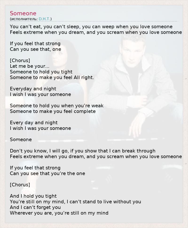 А как ты думаешь, о чем песня "Someone" ?