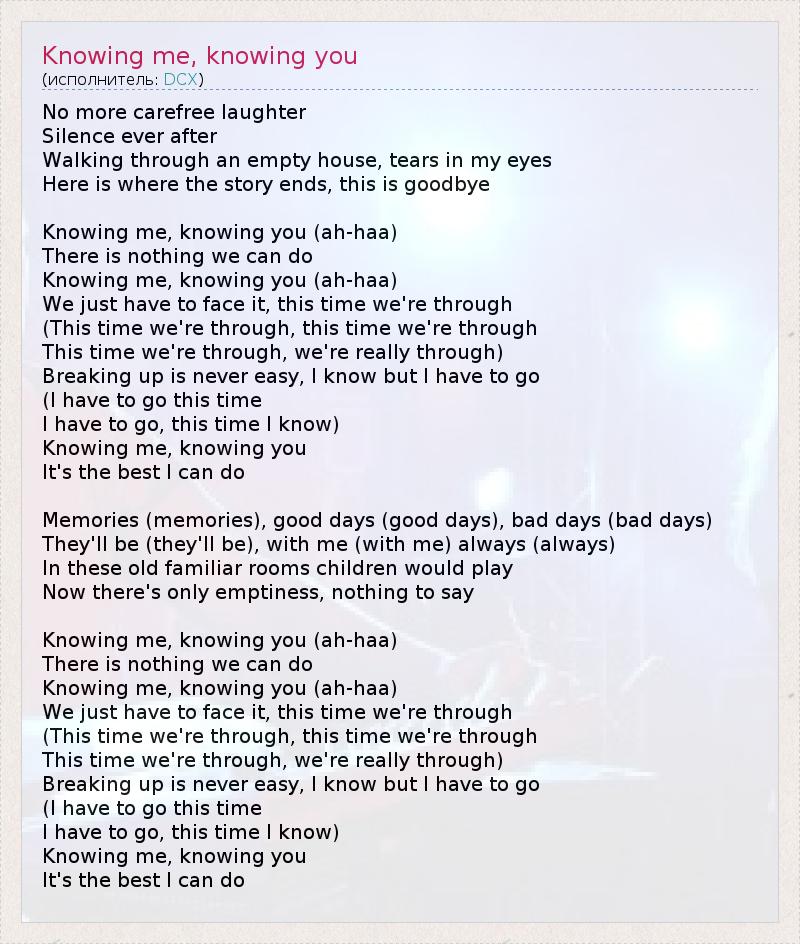 А как ты думаешь, о чем песня "Knowing me, knowing you" ?