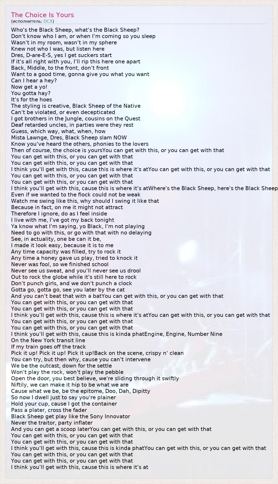 ГлавнаяИсполнителиDCXThe Choice Is Yours