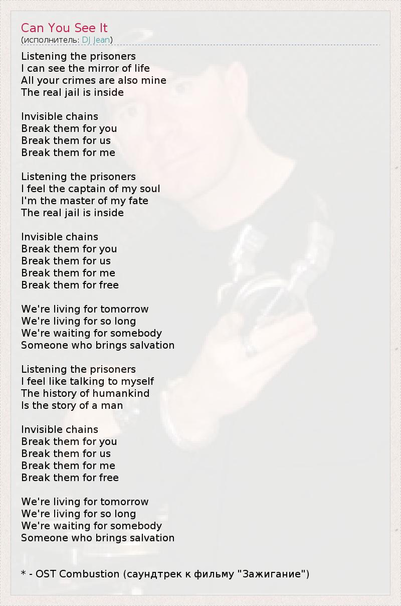 А как ты думаешь, о чем песня "Can You See It" ?