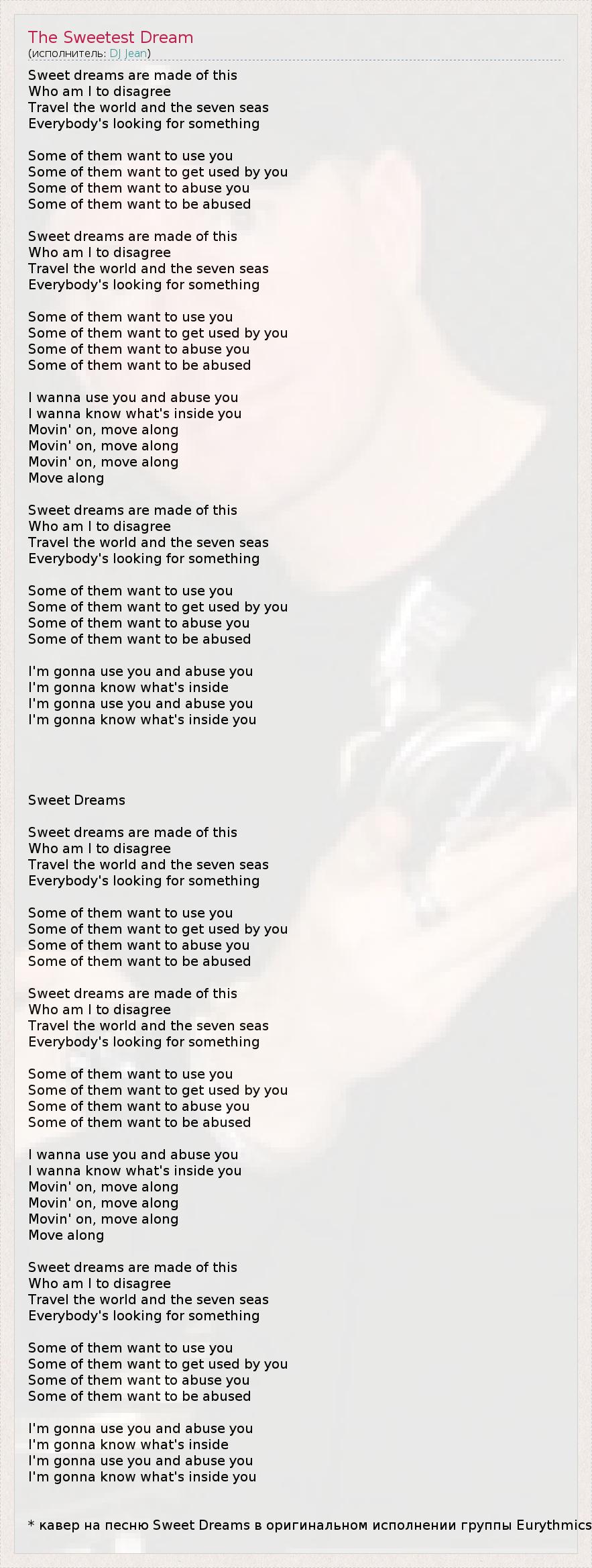 * кавер на песню Sweet Dreams в оригинальном исполнении группы Eurythmics
