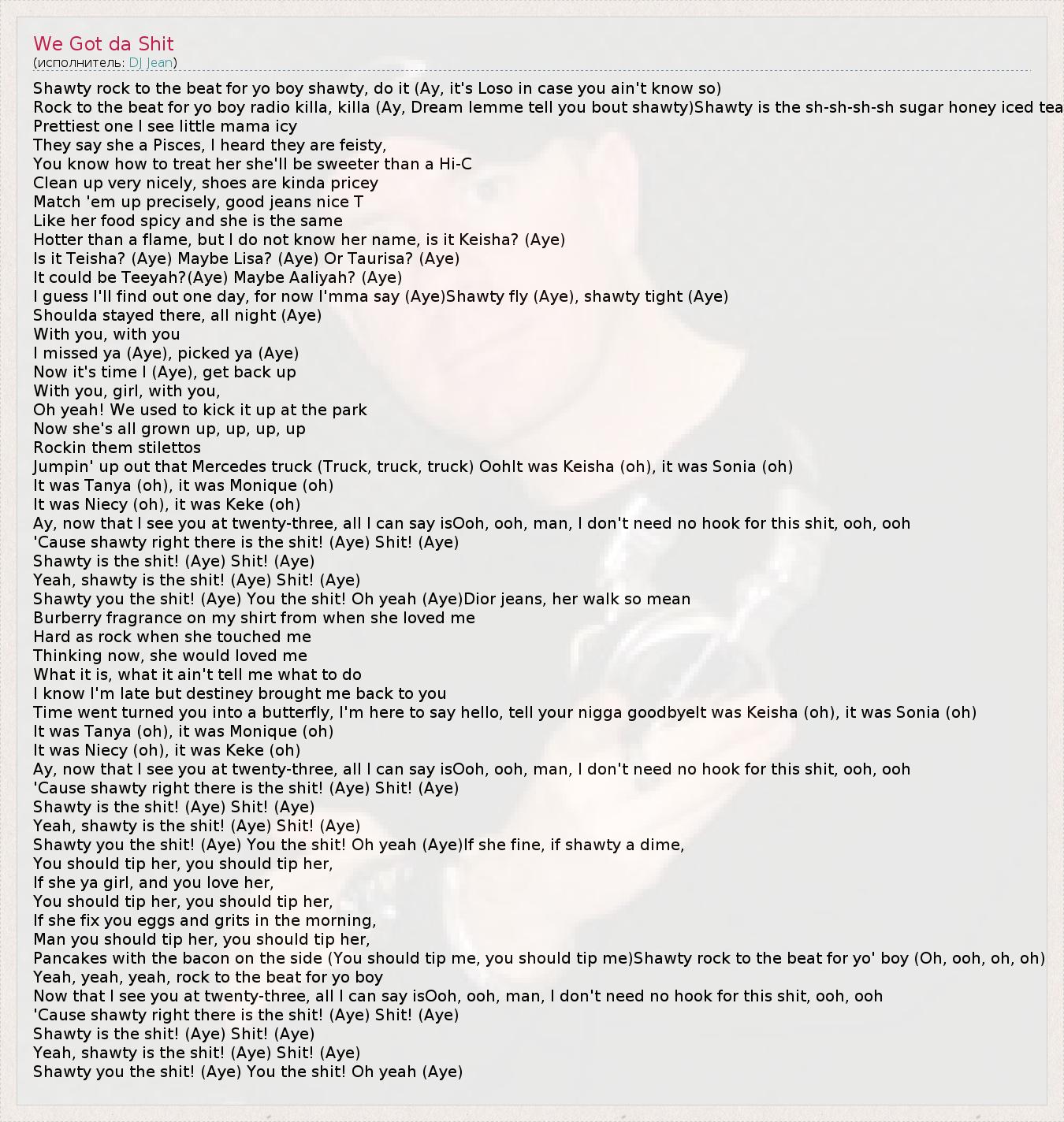 А как ты думаешь, о чем песня "We Got da Shit" ?