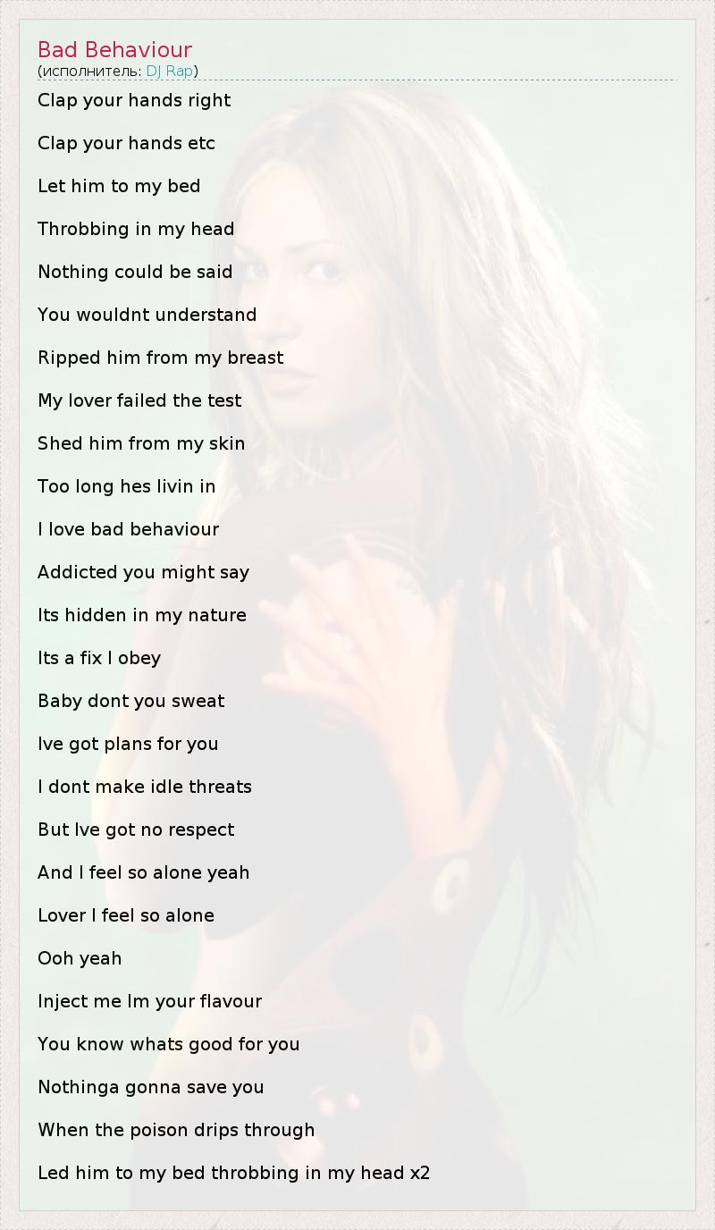 А как ты думаешь, о чем песня "Bad Behaviour" ?