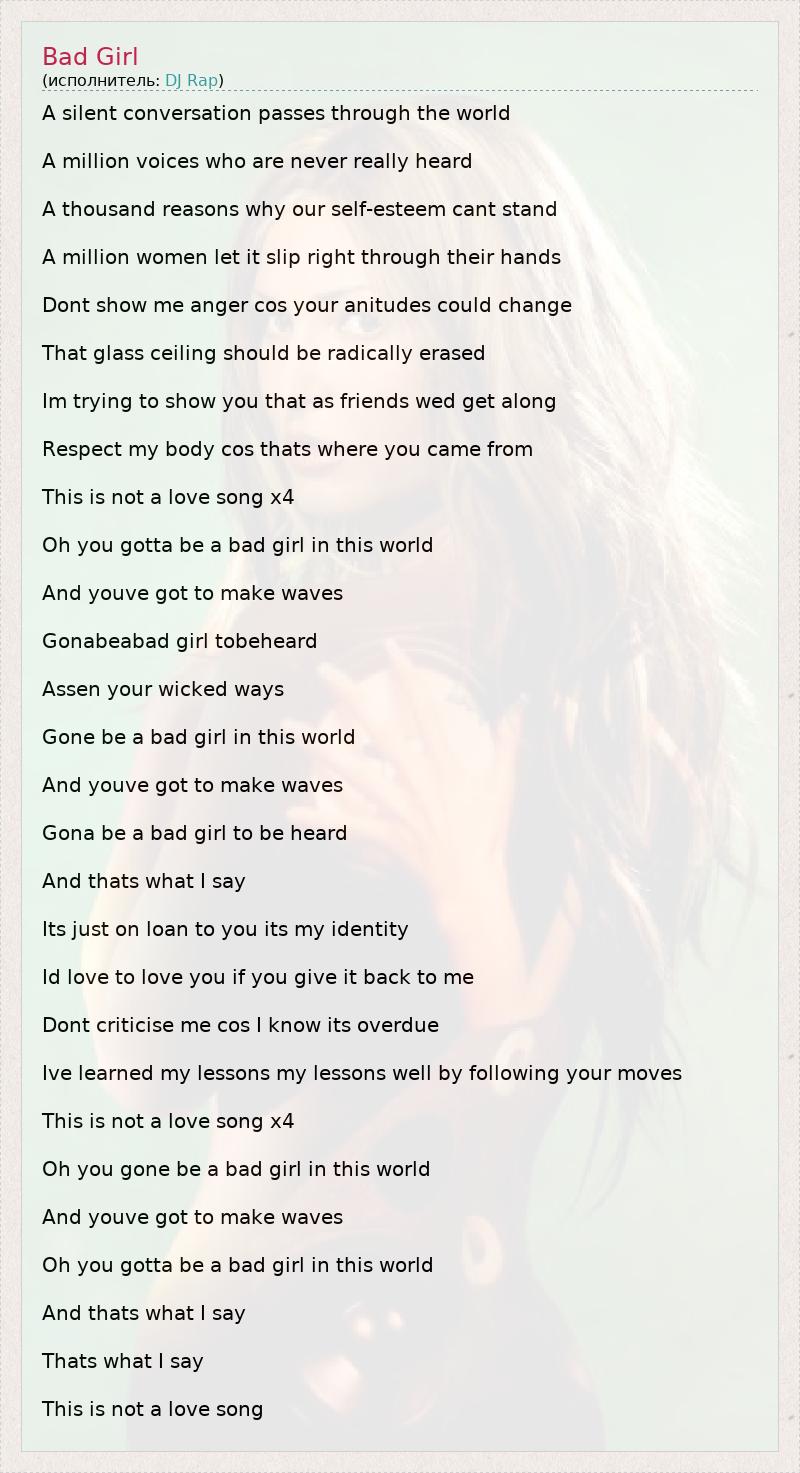 Oh you gotta be a bad girl in this world
