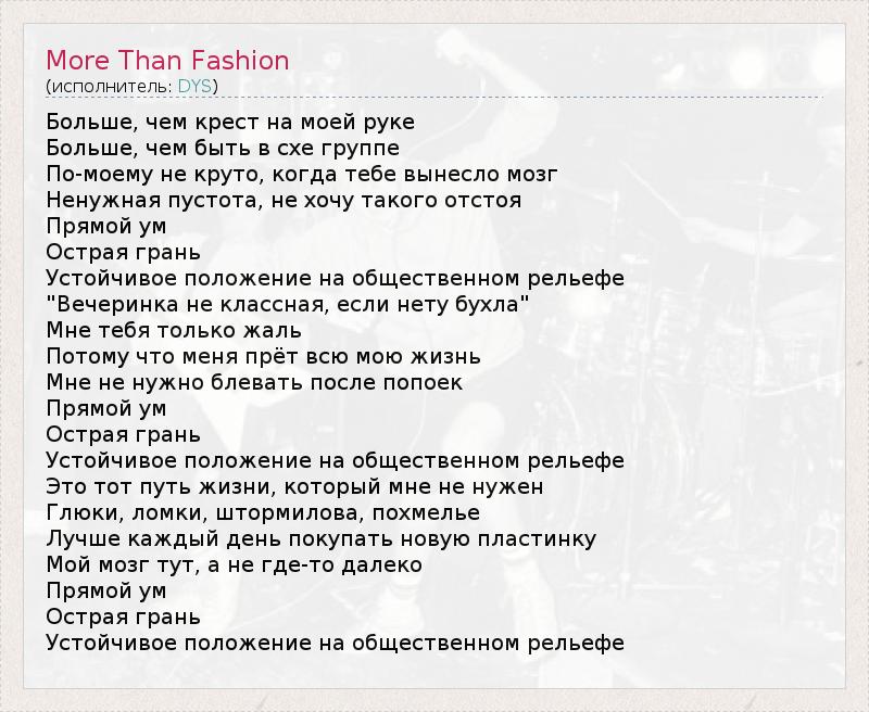 А как ты думаешь, о чем песня "More Than Fashion" ?