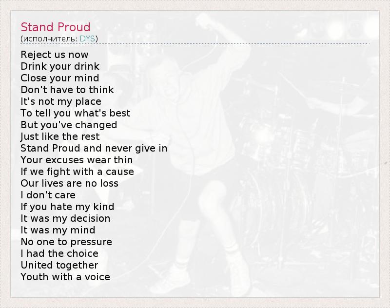 А как ты думаешь, о чем песня "Stand Proud" ?