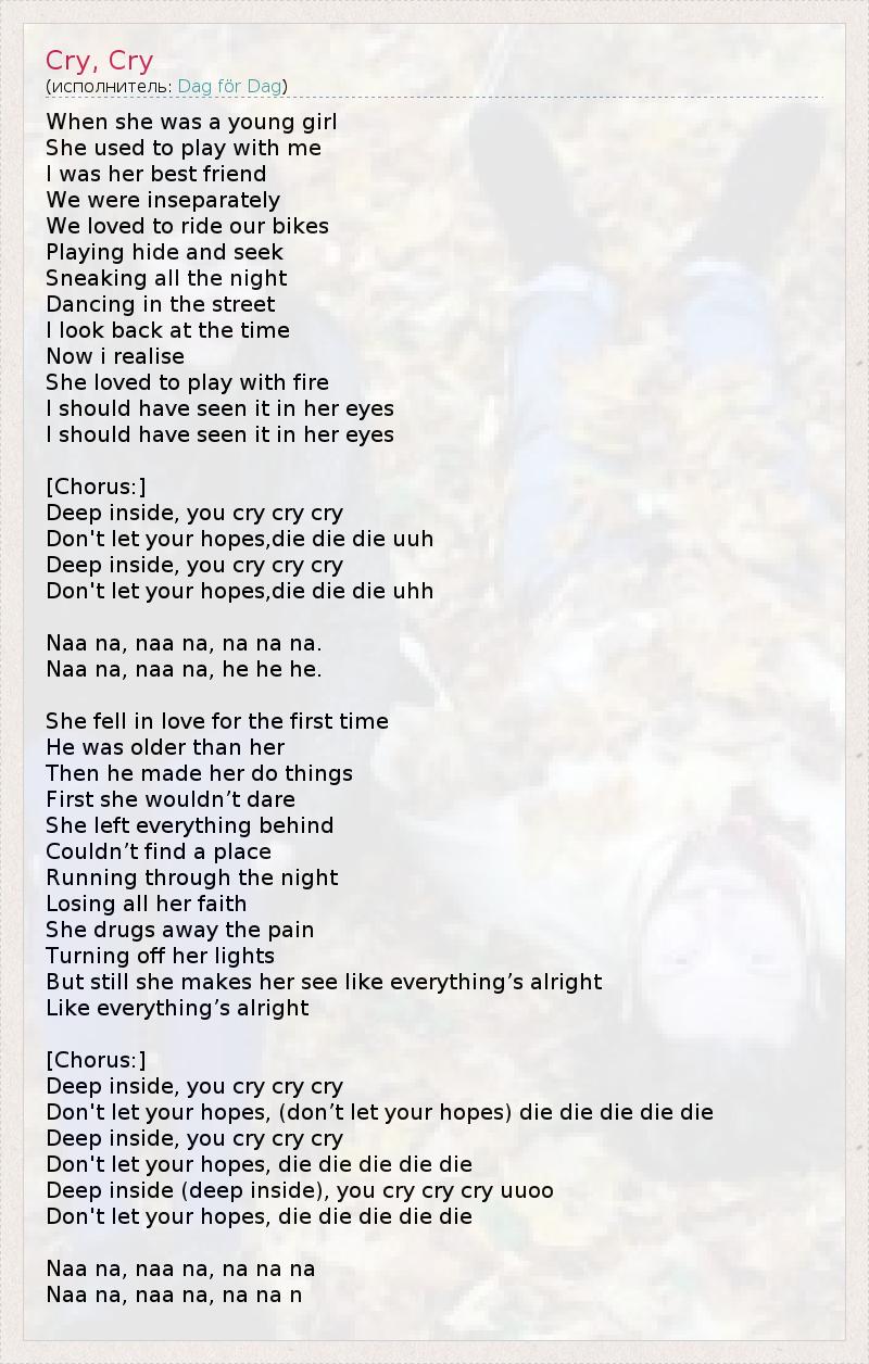 А как ты думаешь, о чем песня "Cry, Cry" ?