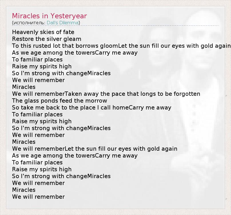 А как ты думаешь, о чем песня "Miracles in Yesteryear" ?