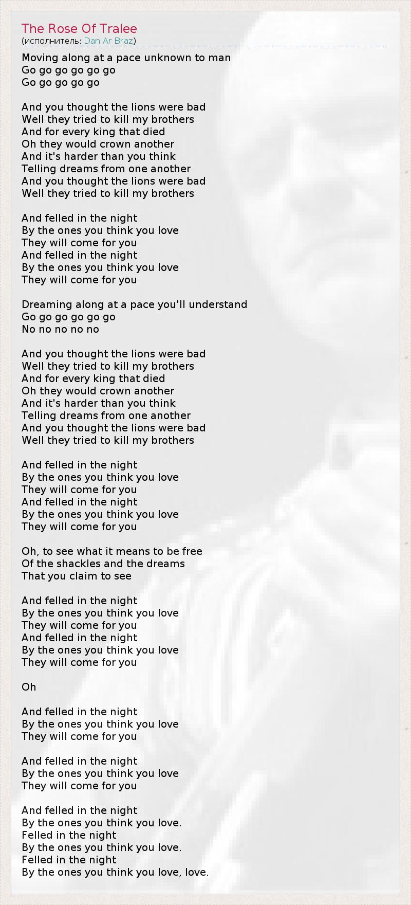 А как ты думаешь, о чем песня "The Rose Of Tralee" ?