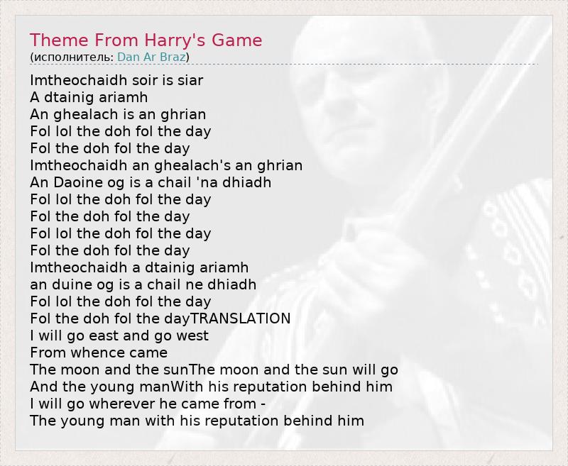 А как ты думаешь, о чем песня "Theme From Harry's Game" ?