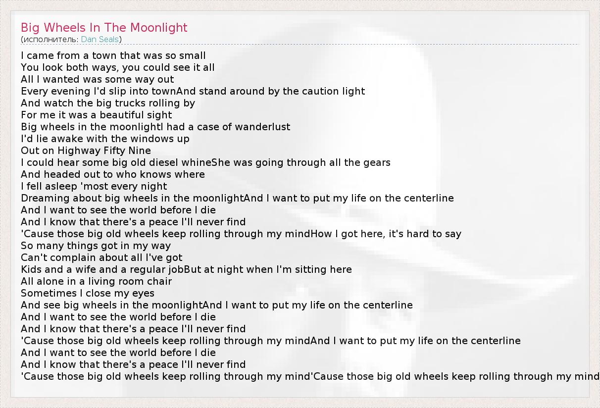 А как ты думаешь, о чем песня "Big Wheels In The Moonlight" ?