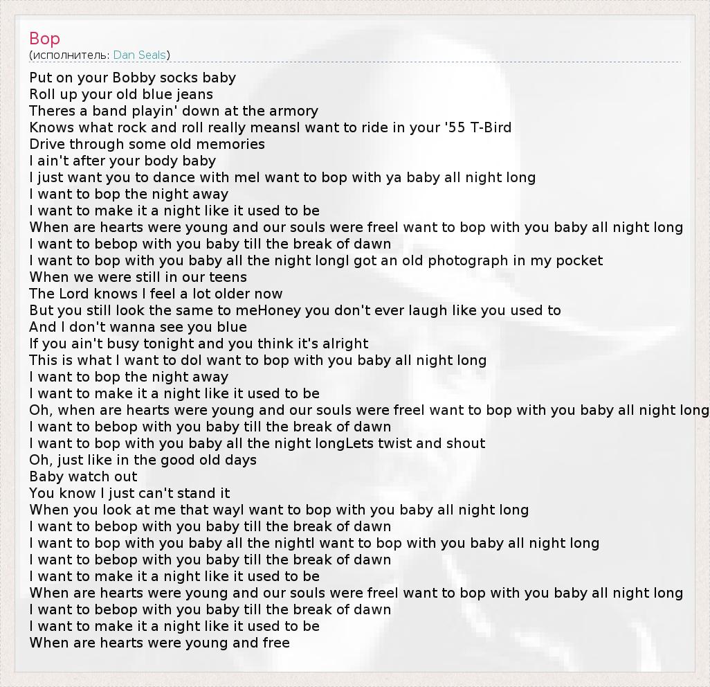 I want to bop with you baby all the nightI want to bop with you baby all night long