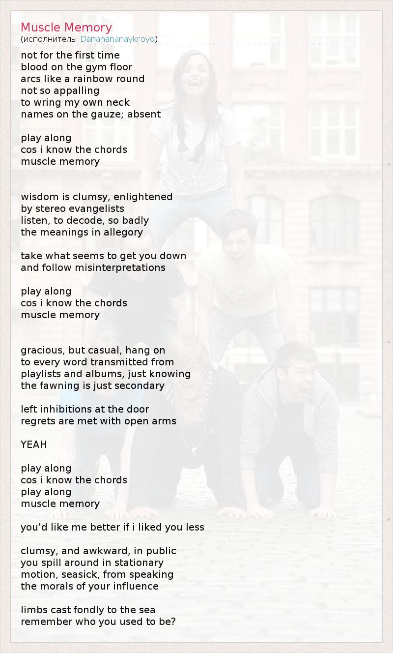 А как ты думаешь, о чем песня "Muscle Memory" ?
