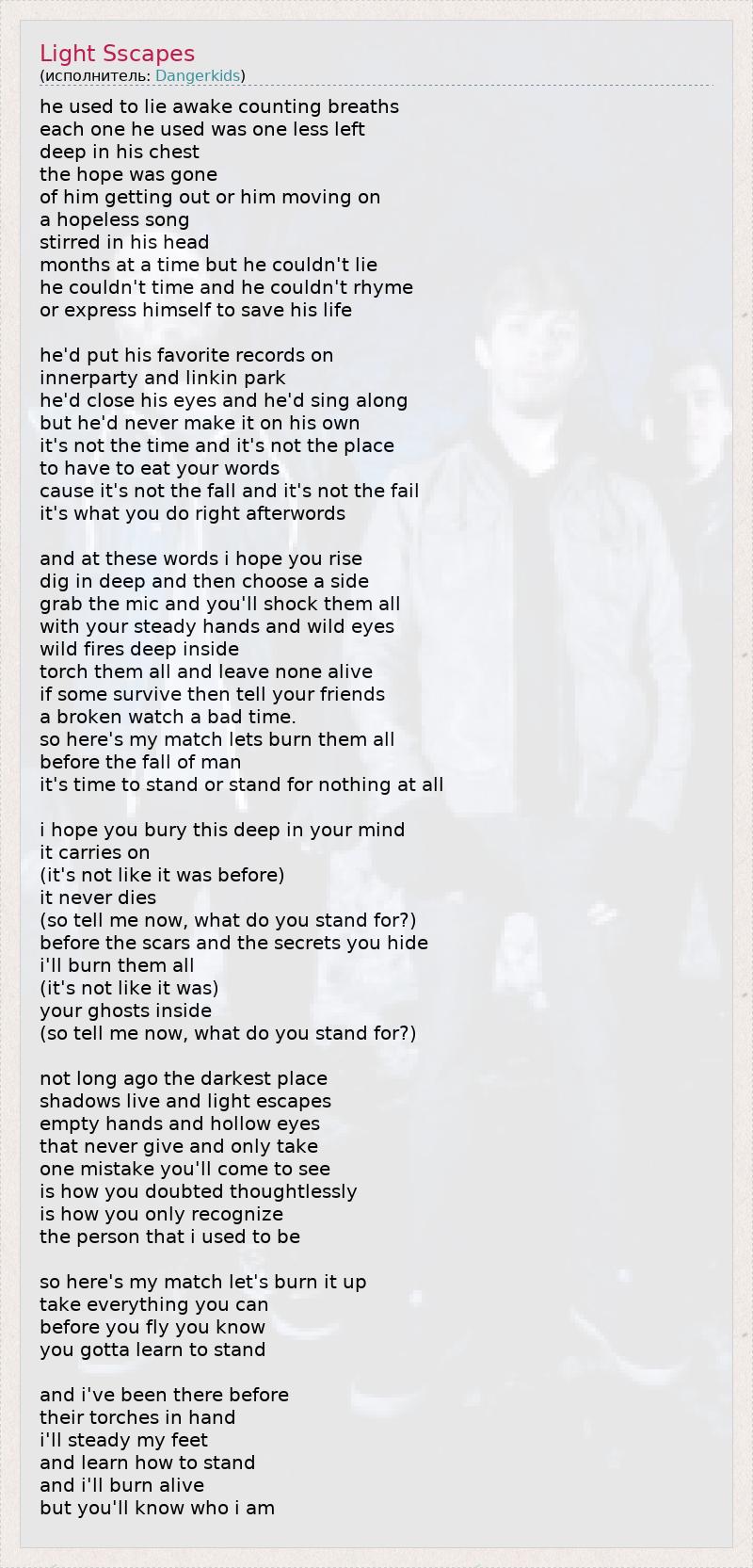 А как ты думаешь, о чем песня "Light Sscapes" ?