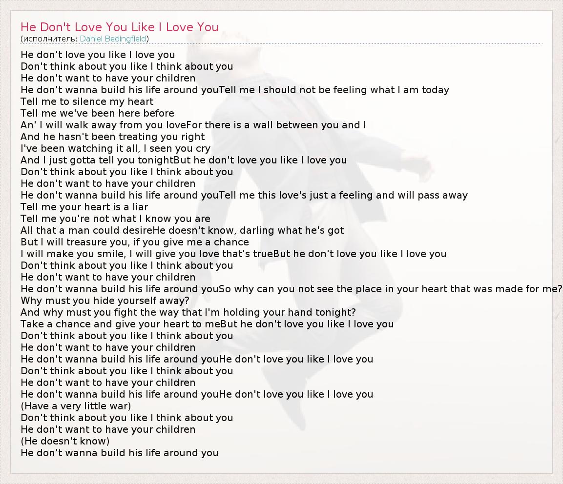 ГлавнаяИсполнителиDaniel BedingfieldHe Don't Love You Like I Love You