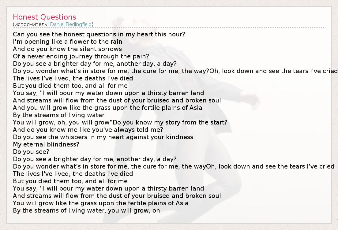 А как ты думаешь, о чем песня "Honest Questions" ?