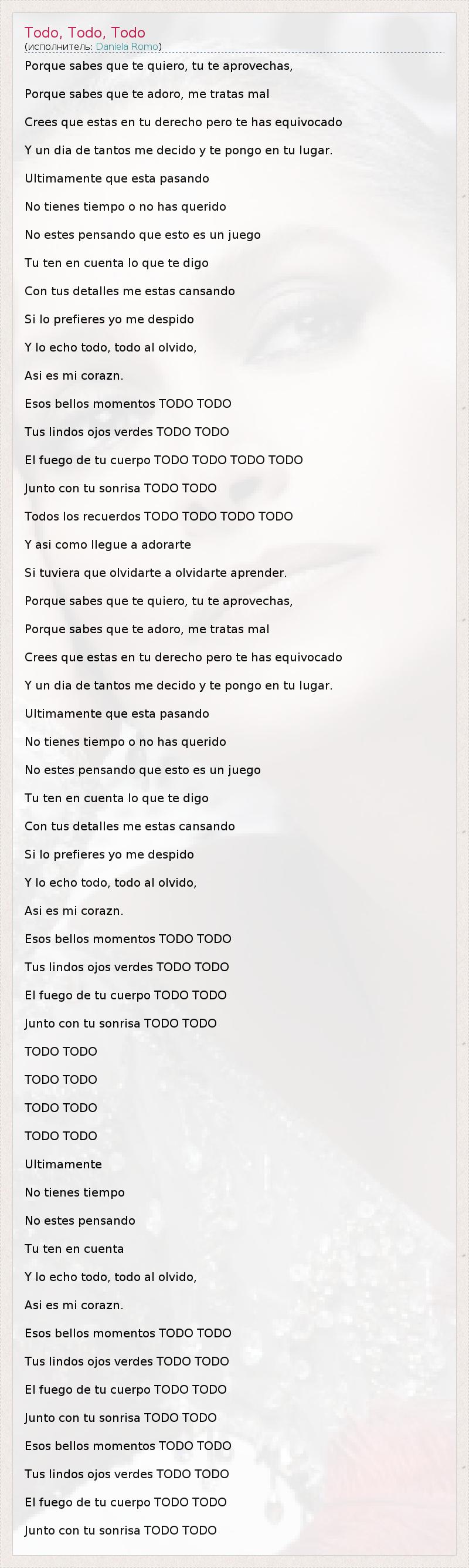 А как ты думаешь, о чем песня "Todo, Todo, Todo" ?