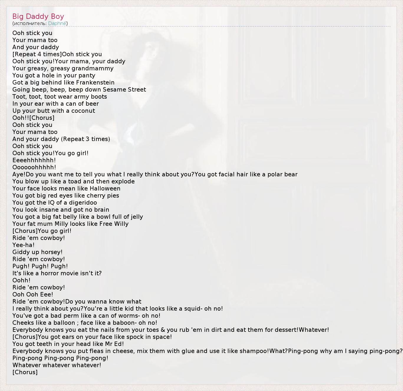 А как ты думаешь, о чем песня "Big Daddy Boy" ?