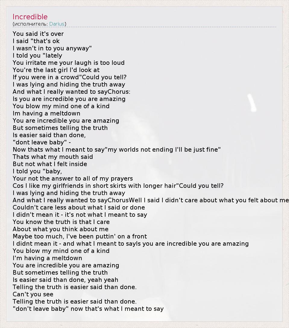 I didnt mean it - and what I meant to sayIs you are incredible you are amazing