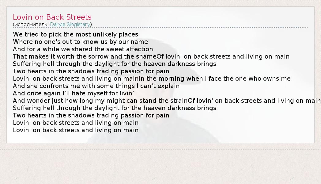 А как ты думаешь, о чем песня "Lovin on Back Streets" ?
