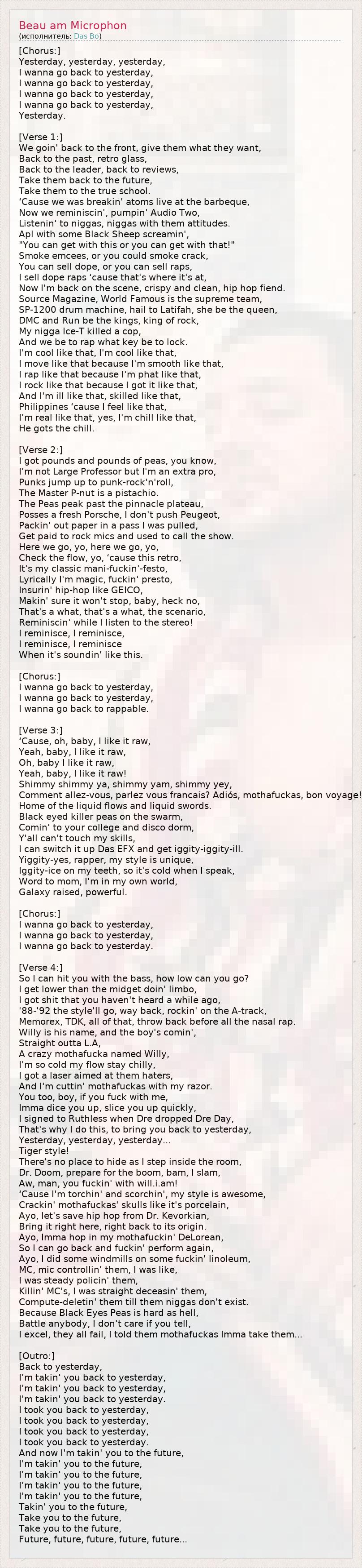А как ты думаешь, о чем песня "Beau am Microphon" ?
