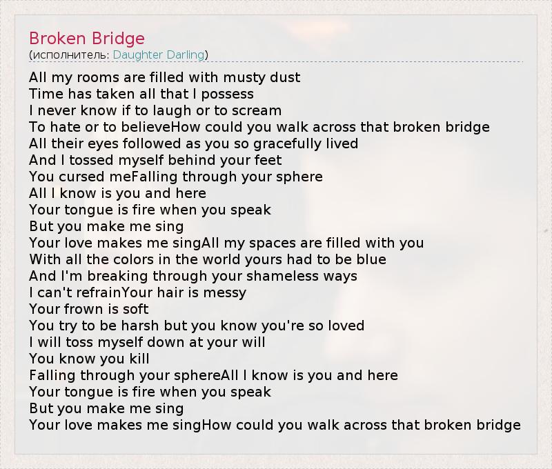 А как ты думаешь, о чем песня "Broken Bridge" ?