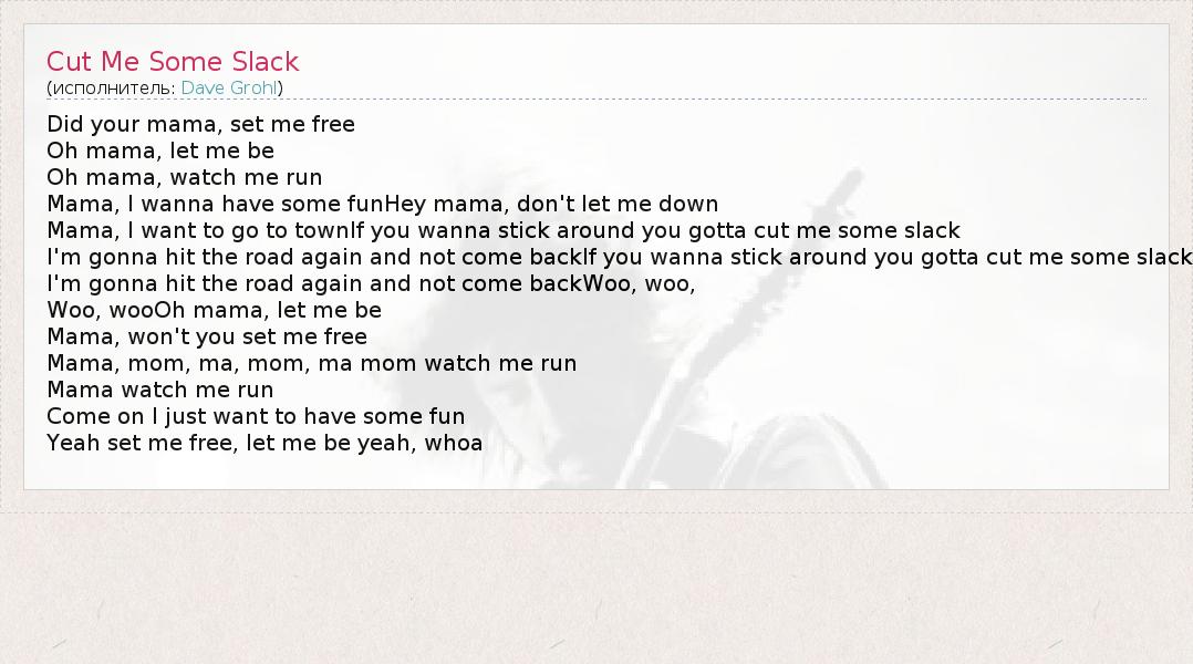 А как ты думаешь, о чем песня "Cut Me Some Slack" ?