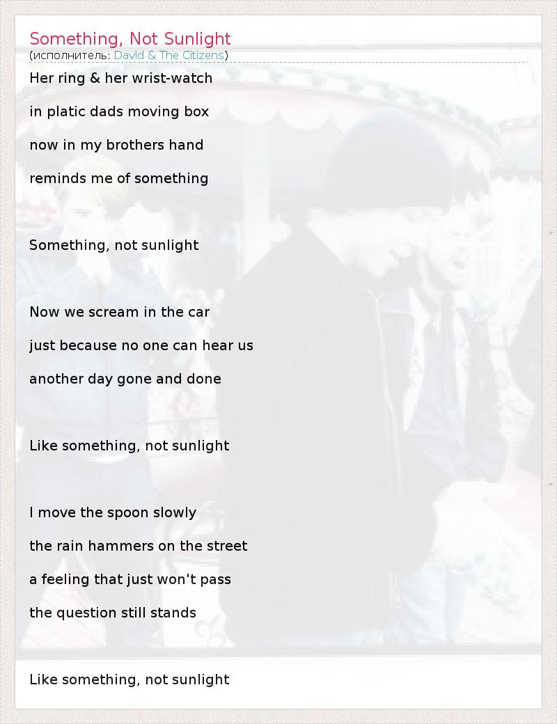 А как ты думаешь, о чем песня "Something, Not Sunlight" ?
