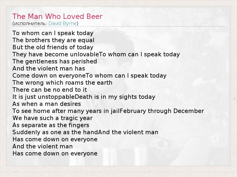 А как ты думаешь, о чем песня "The Man Who Loved Beer" ?