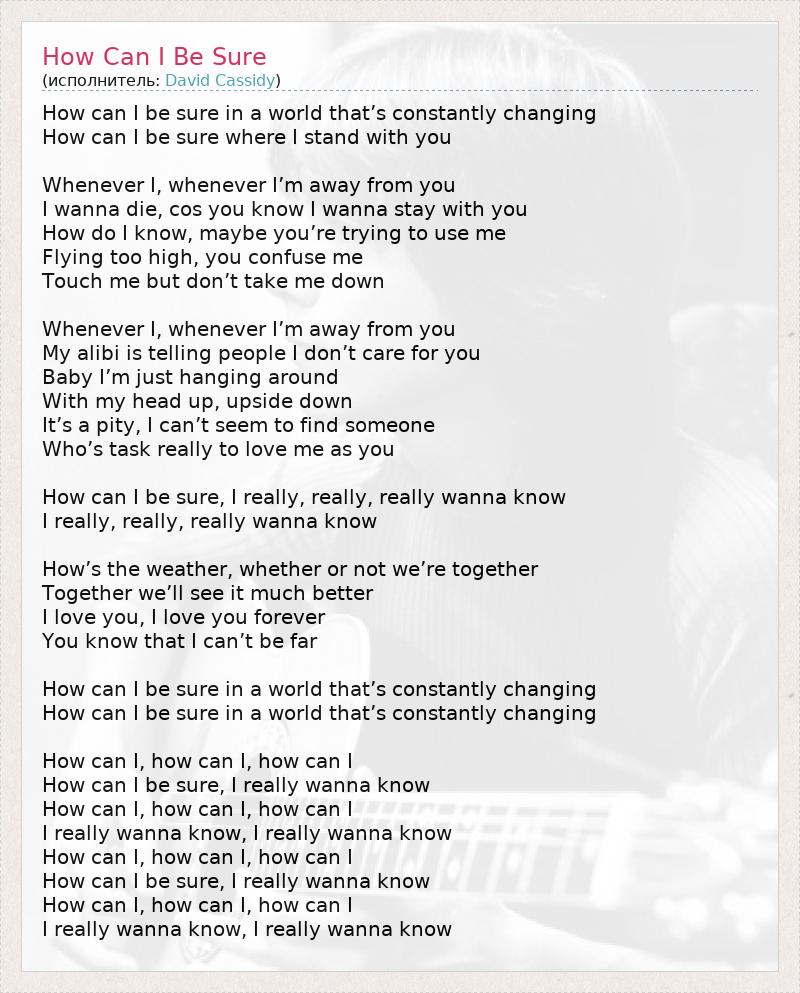 А как ты думаешь, о чем песня "How Can I Be Sure" ?