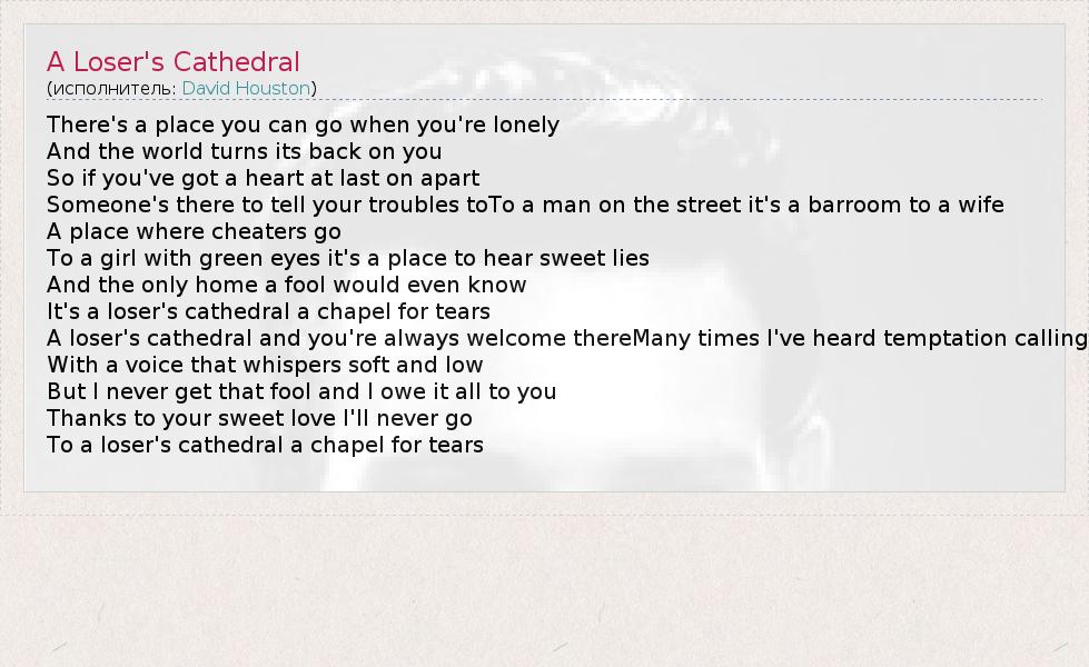 А как ты думаешь, о чем песня "A Loser's Cathedral" ?
