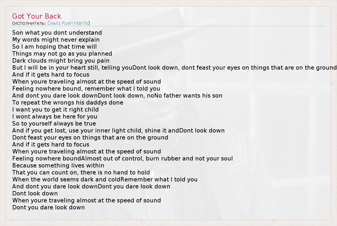 А как ты думаешь, о чем песня "Got Your Back" ?
