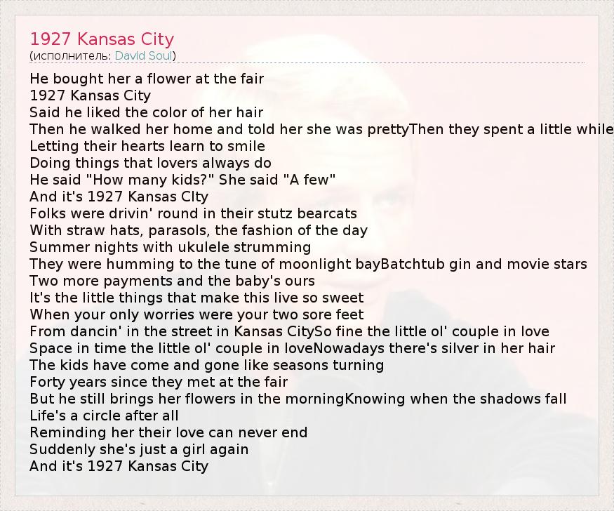 А как ты думаешь, о чем песня "1927 Kansas City" ?