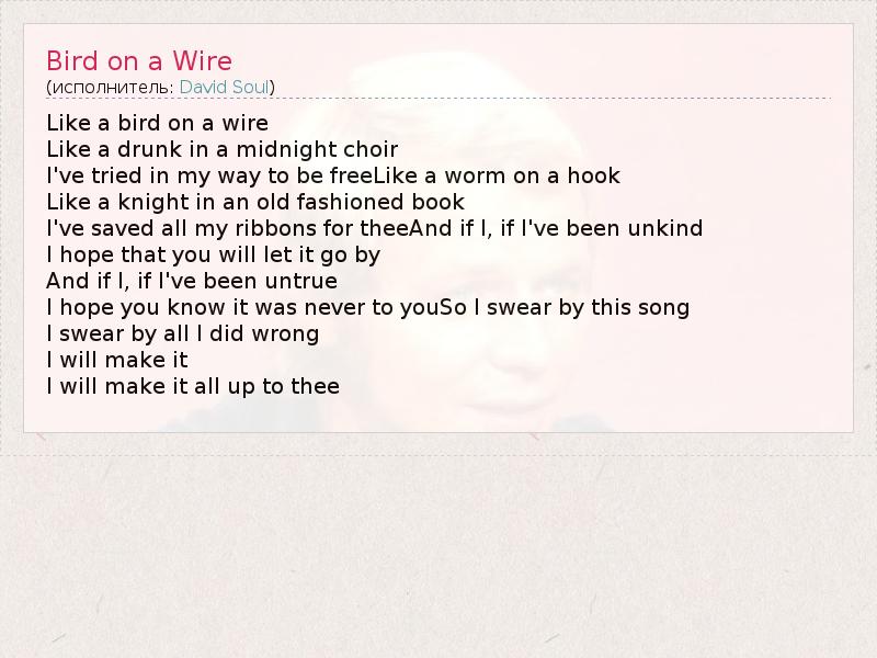 А как ты думаешь, о чем песня "Bird on a Wire" ?