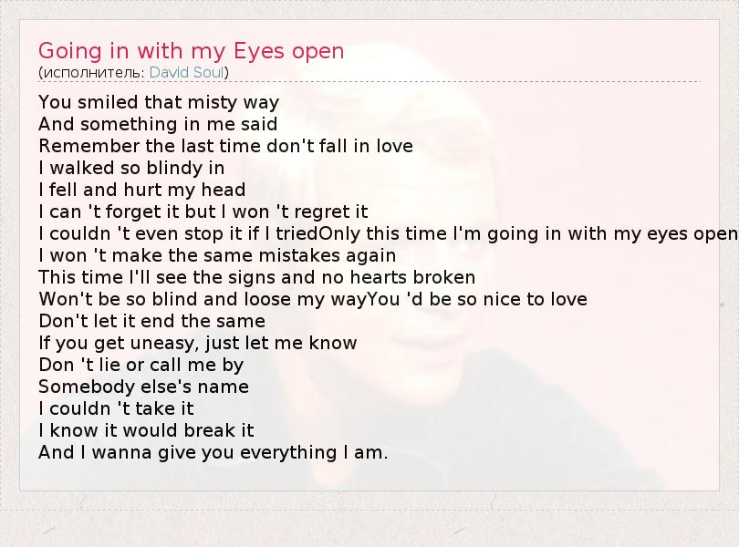 А как ты думаешь, о чем песня "Going in with my Eyes open" ?