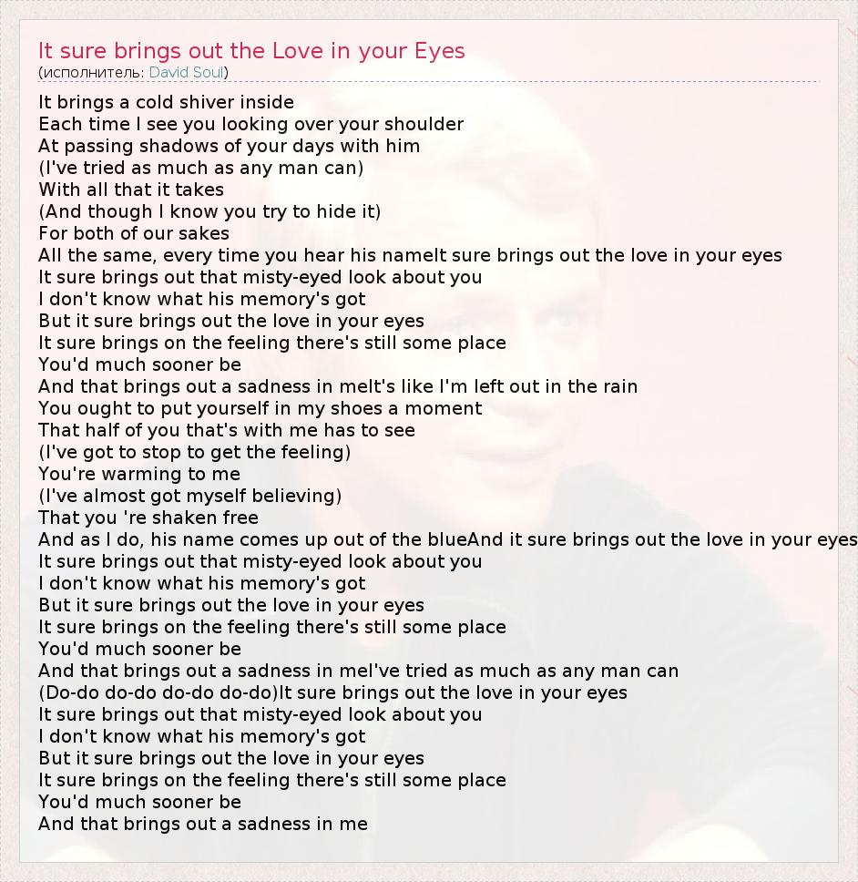 ГлавнаяИсполнителиDavid SoulIt sure brings out the Love in your Eyes