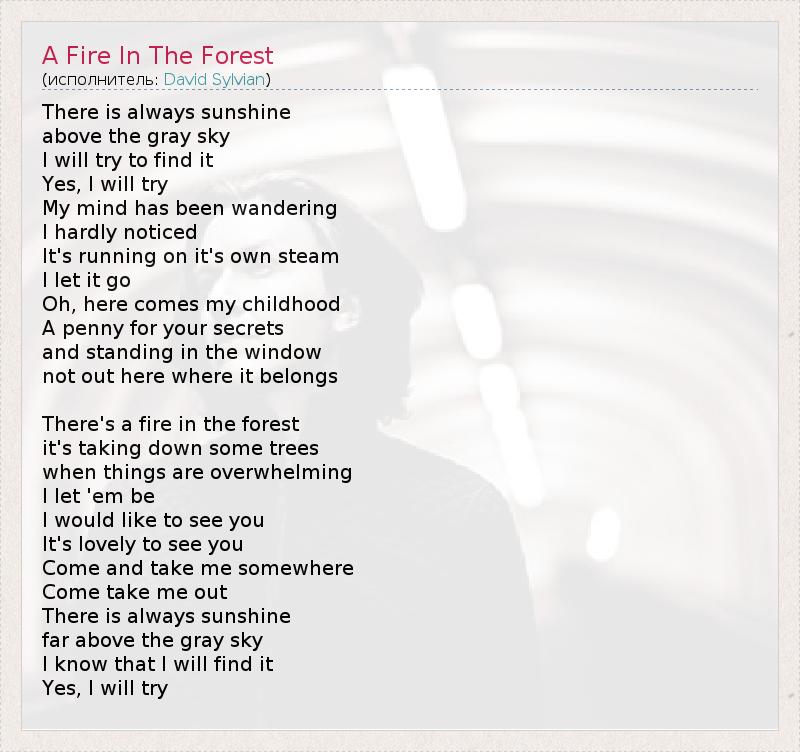 А как ты думаешь, о чем песня "A Fire In The Forest" ?