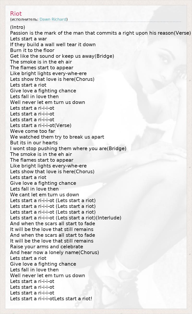 Lets start a ri-i-i-ot (Lets start a riot)(Interlude)