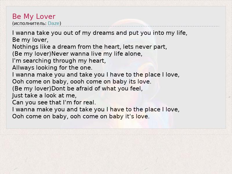 А как ты думаешь, о чем песня "Be My Lover" ?