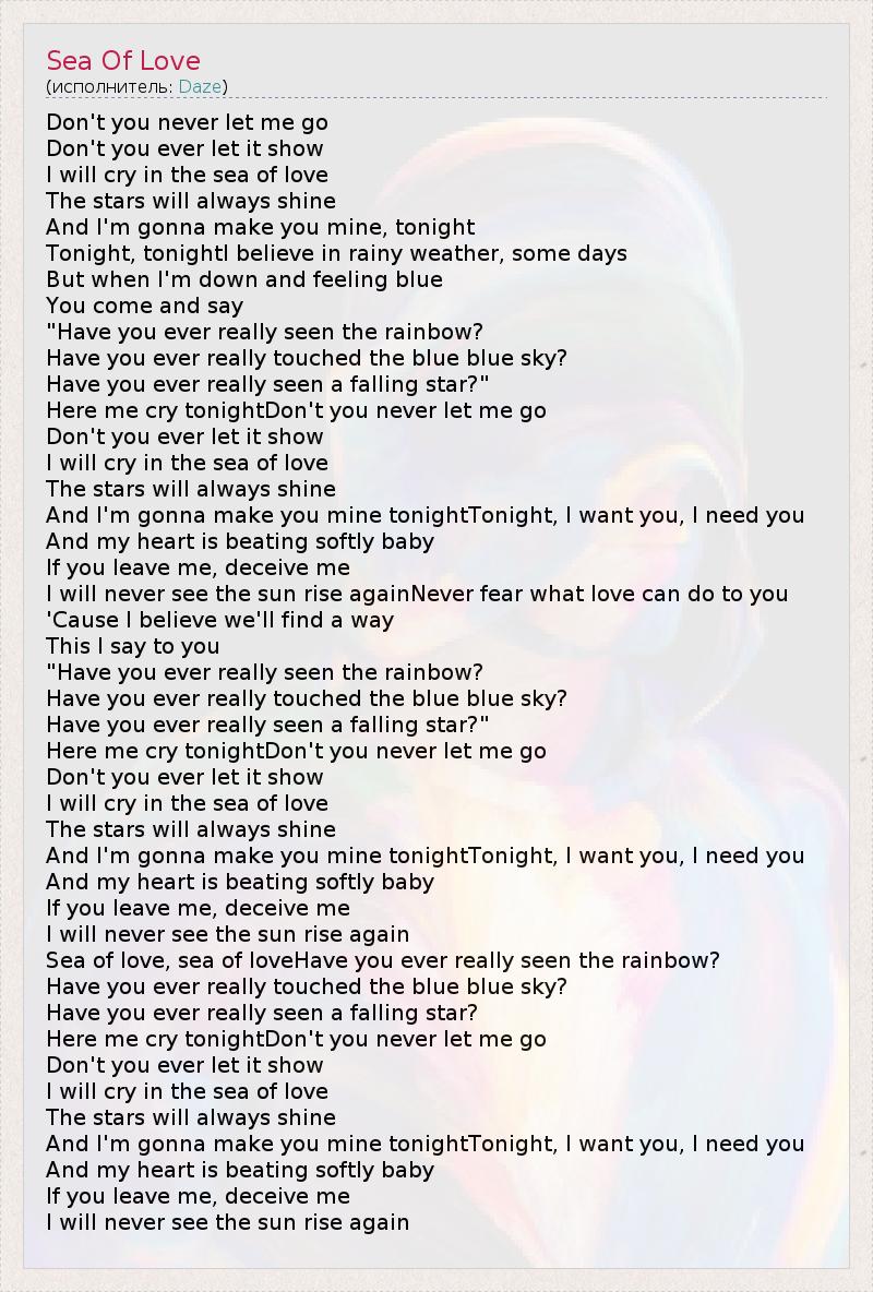 А как ты думаешь, о чем песня "Sea Of Love" ?