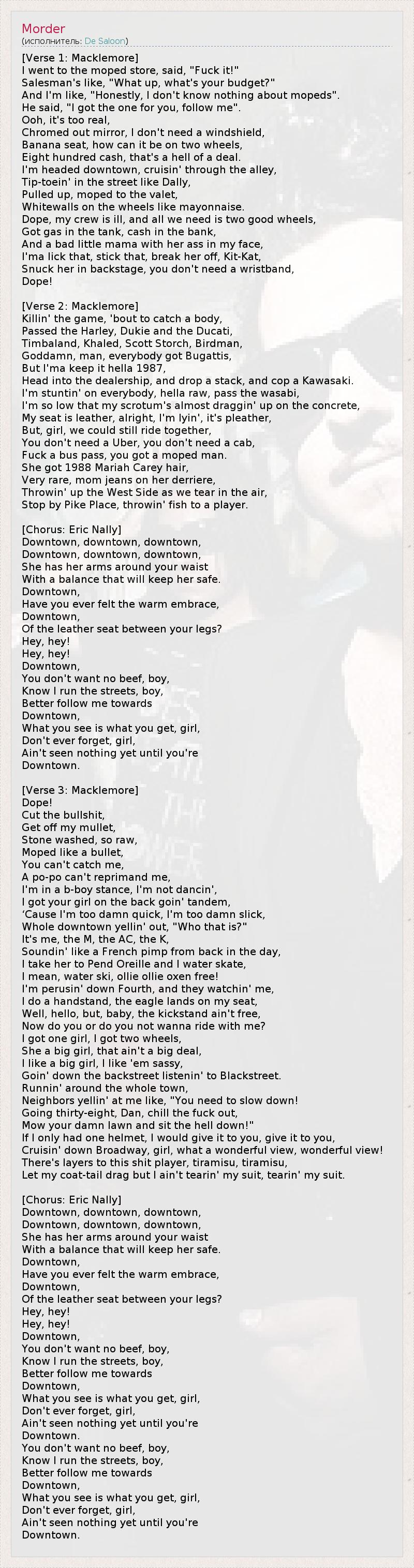 1 — Отсылка к хиту 1985 года "La Di Da Di", исполненному битбоксером Дуг И. Фрешем и эм-си Рики Ди.