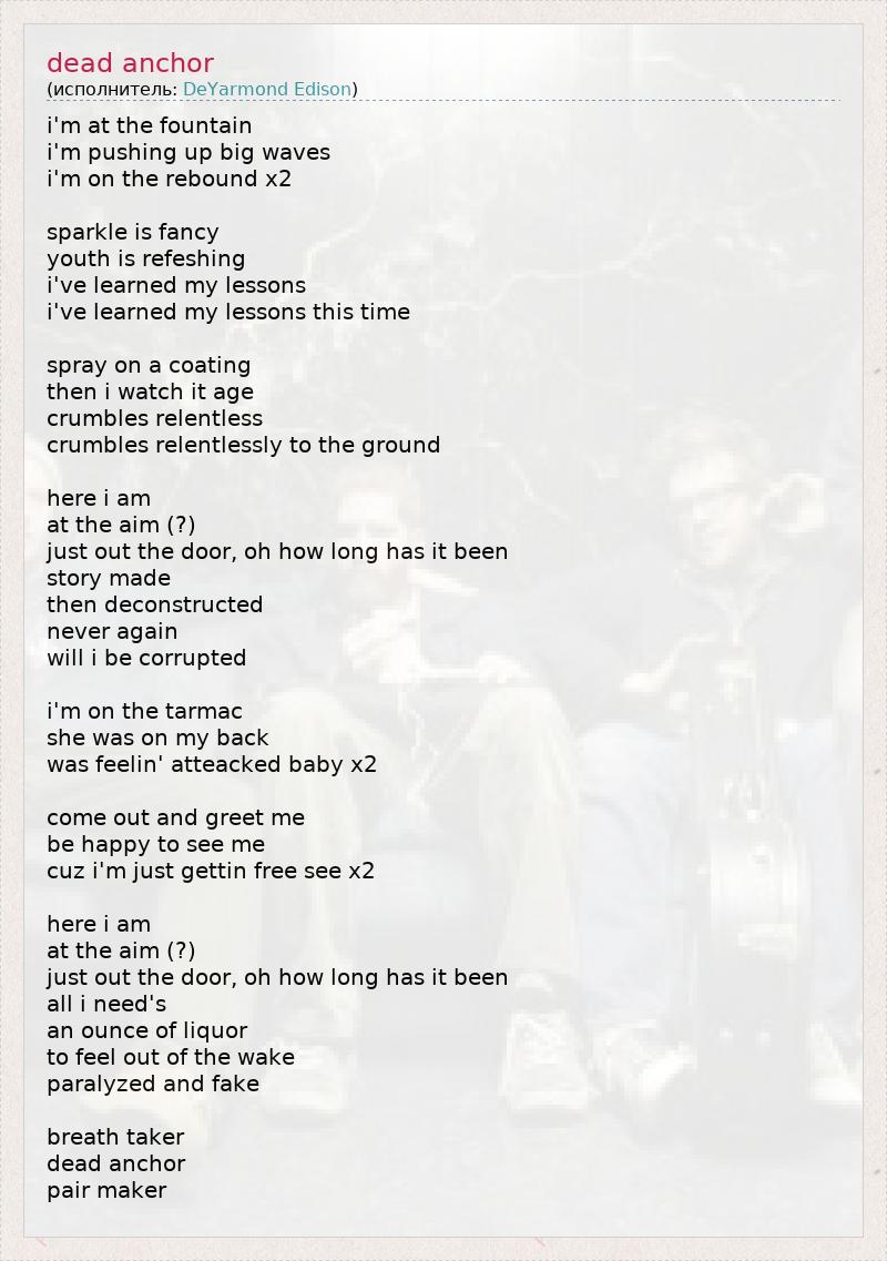 Это интересно:DeYarmond Edison is perhaps best known as the former band of the members of Bon Iver, Megafaun, and Field Report. Guitarist and vocalist Justin Vernon created Bon Iver; the remaining members (Brad Cook: bass, guitar; Phil Cook: keyboards, banjo; Joe Westerlund: Percussion) went on to form the freak folk group Megafaun.The band began as friends from Eau Claire, Wisconsin, evolving from Justin Vernon's early band Mount Vernon and takes its name from Justin Vernon's two middle names. The members first met at the H.O.R.D.E. Festival in 1997, bonded at a Wisconsin jazz camp, and played together in various combinations before finally playing as DeYarmond Edison in 2002. The band's... продолжение