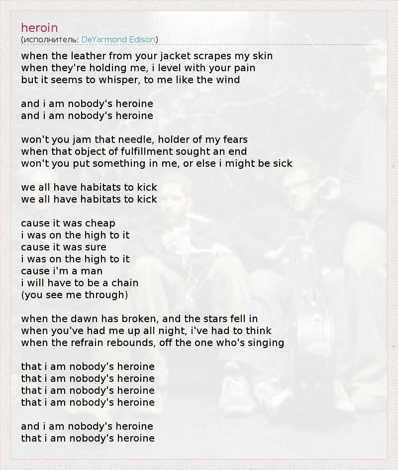 А как ты думаешь, о чем песня "heroin" ?