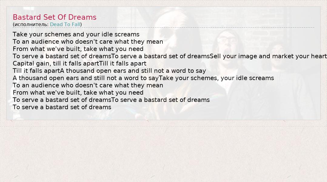 А как ты думаешь, о чем песня "Bastard Set Of Dreams" ?