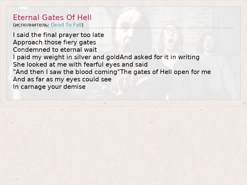 А как ты думаешь, о чем песня "Eternal Gates Of Hell" ?
