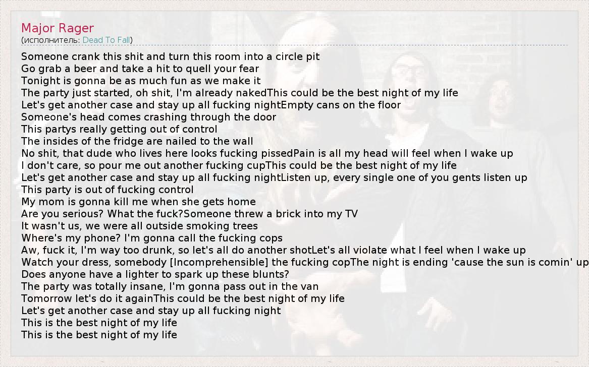А как ты думаешь, о чем песня "Major Rager" ?
